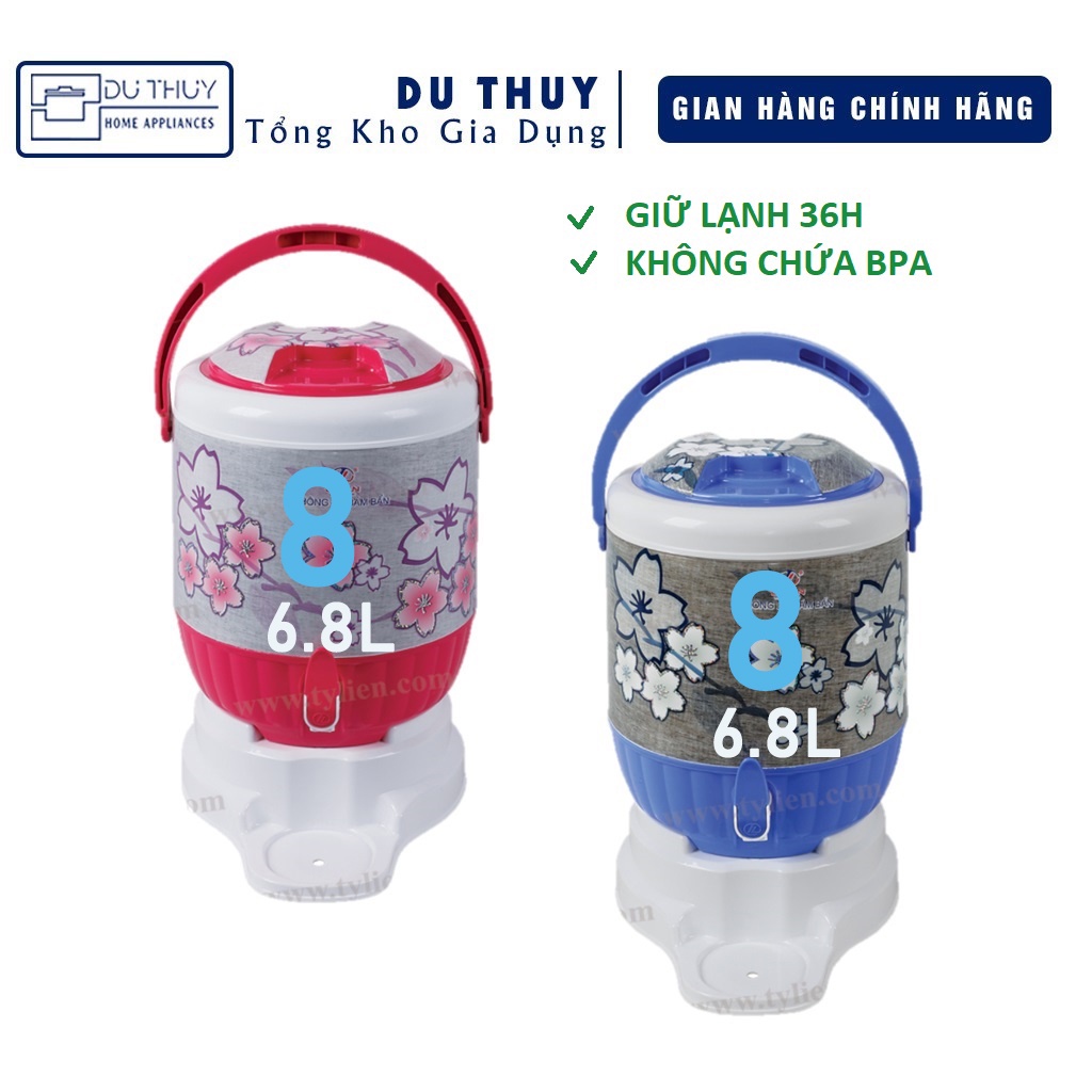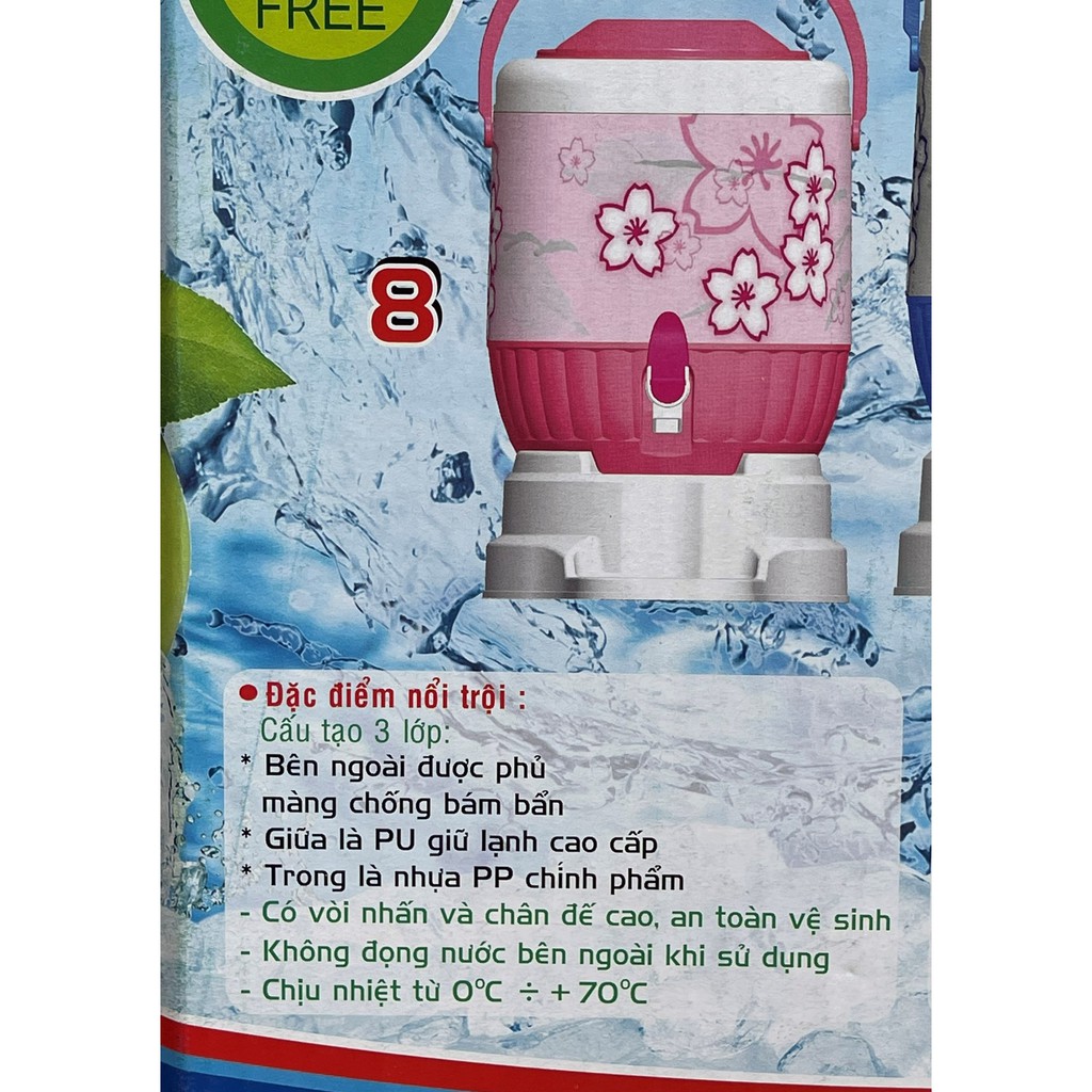 Bình đá giữ nhiệt có vòi Lucky số 8, giữ lạnh 36 giờ, dung tích 6.8L, chống bám bẩn, không chứa BPA, nhựa PP chính phẩm