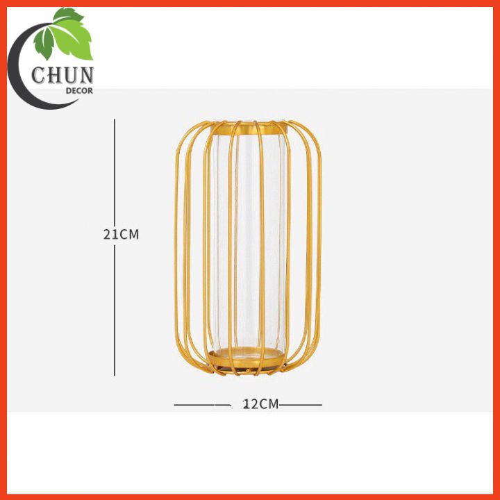 - Bình hoa thiết kế hình lồng chim bằng kim loại cao cấp mạ vàng sang trọng bên trong có lõi thủy tinh trong suốt