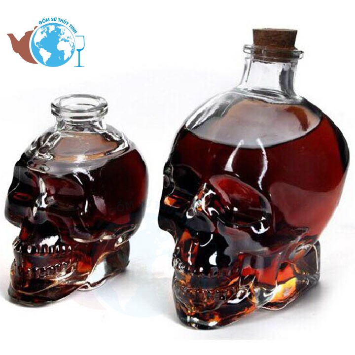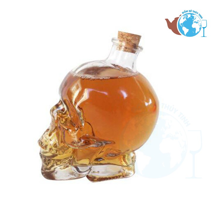 Bình thủy tinh đầu lâu sử dụng chất liệu thủy tinh cao cấp, trong suốt. Rất dễ vệ sinh, chùi rửa.