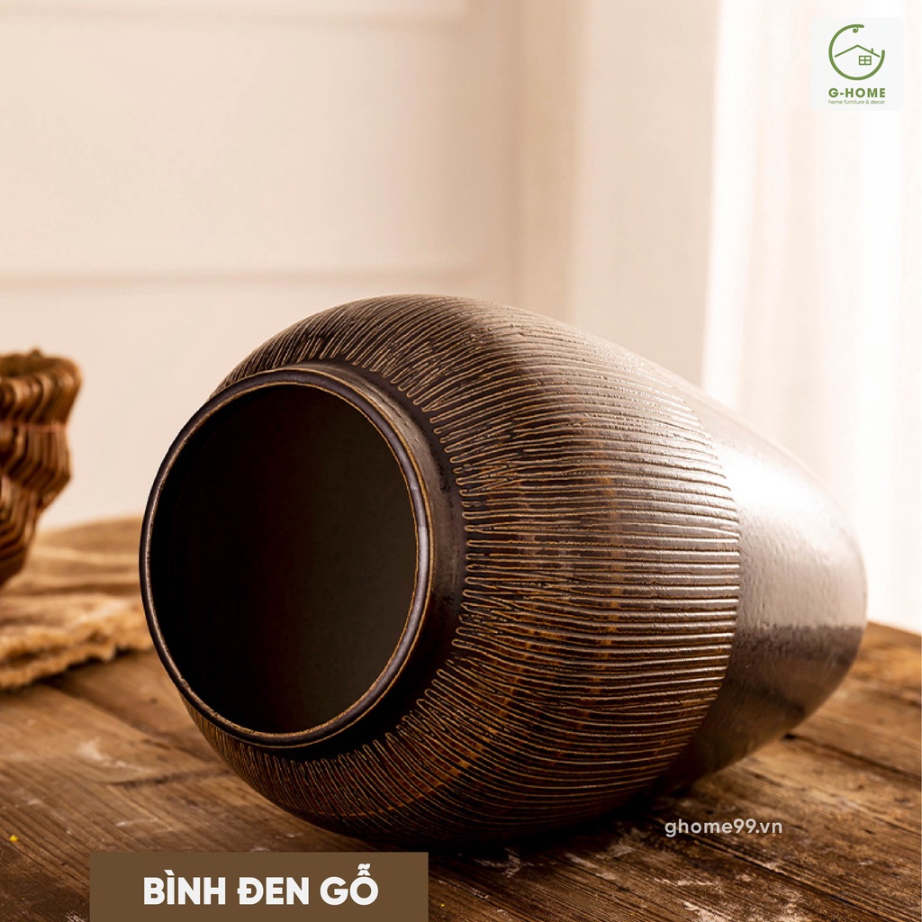 Bình đen gỗ cắm hoa cao cấp Ghome, bình cao cấp trang trí, cắm hoa, decor nhà cửa BH21 ĐEN GỖ