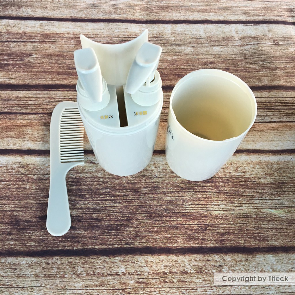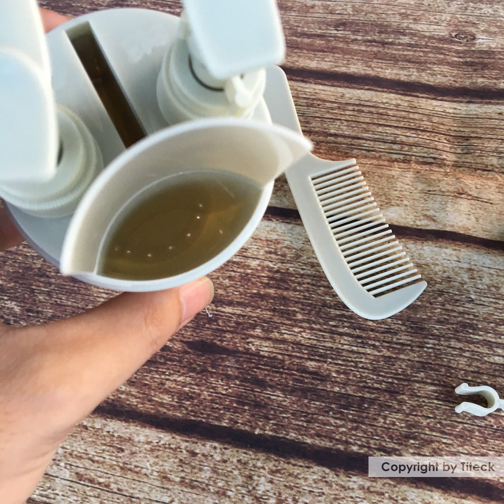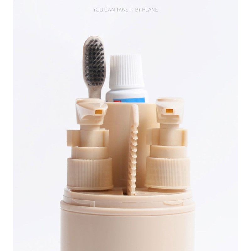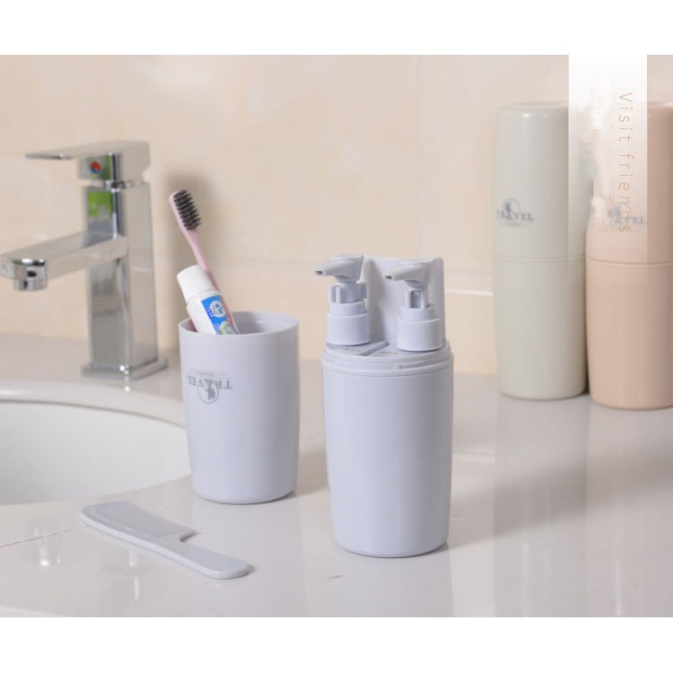 Chức năng : Bình du lịch chứa 5 đồ trong 1 bao gồm : Lược, Bàn chải, tuýp kem đánh răng cỡ vừa, 1 khoang chứa dầu gội, 1 khoang chứa sữa tắm, dầu xả, kem......