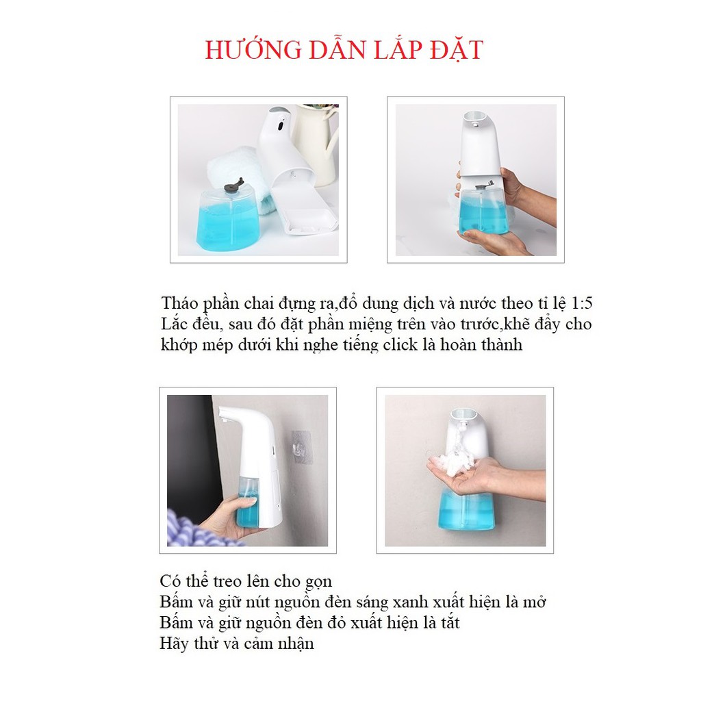 - Chai tạo bọt tự động đưa tay gần khu vực miệng bình nó sẽ tự động nhả 1 lượng xà bông vừa đủ bong bóng siêu mịn,rất dễ dàng chỉ trong 0,25s với bộ phận cảm biến thông minh siêu nhạy khiến cho việc rửa tay trở nên đơn giản thuận tiện tiết kiệm tối đa xà bông và thời gian.
