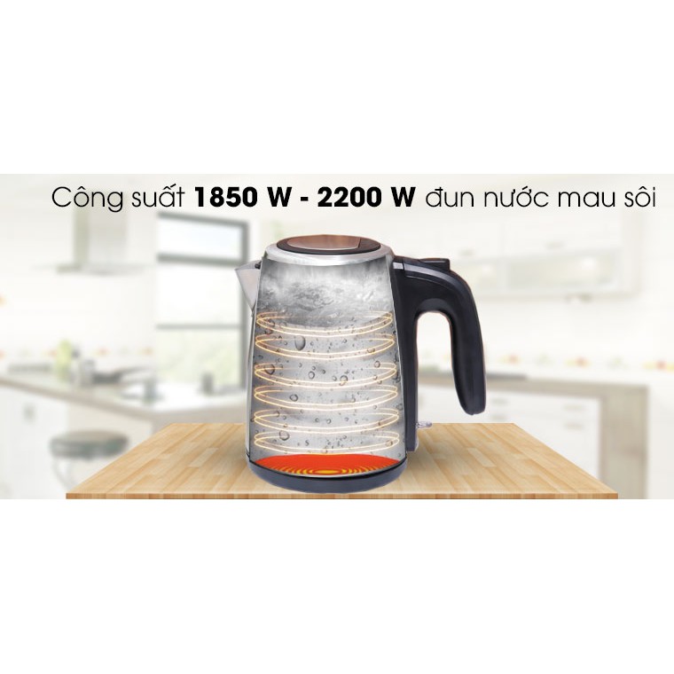 kiểu dáng hiện đại, gọn đẹp, dung tích 1.5 lít phù hợp sử dụng tại gia đình, văn phòng cho nhu cầu nước nóng pha trà, sữa, nấu mì…