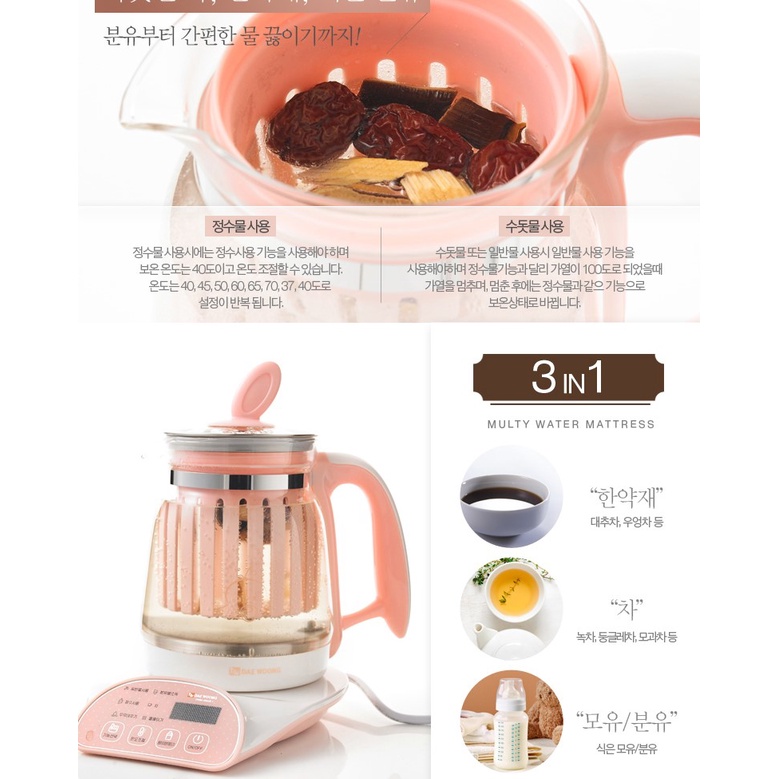 Thiết Bị Điện Gia Dụng > Đồ gia dụng nhà bếp > Ấm đun siêu tốc || Bình đun giữ nhiệt và tiệt trùng hâm sữa 3 trong 1 DAEWOONG MORNINGCOM Hàn QuốcCòn hàng