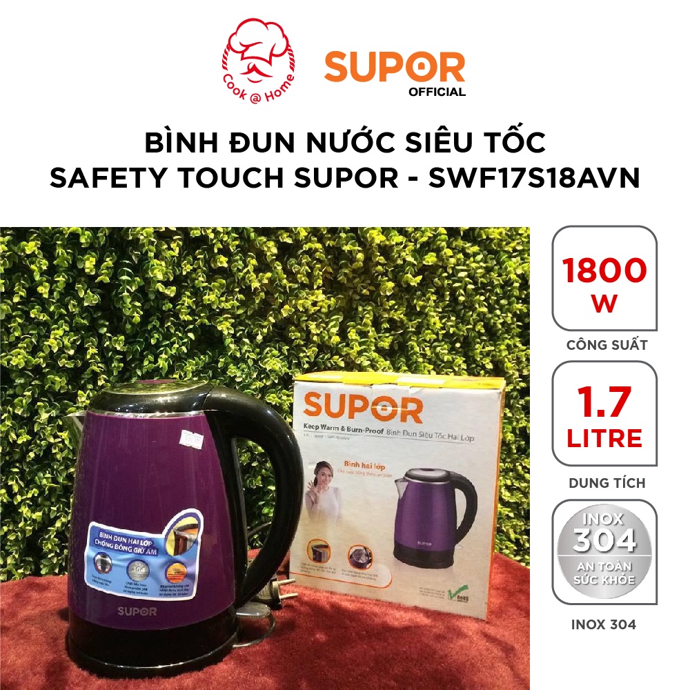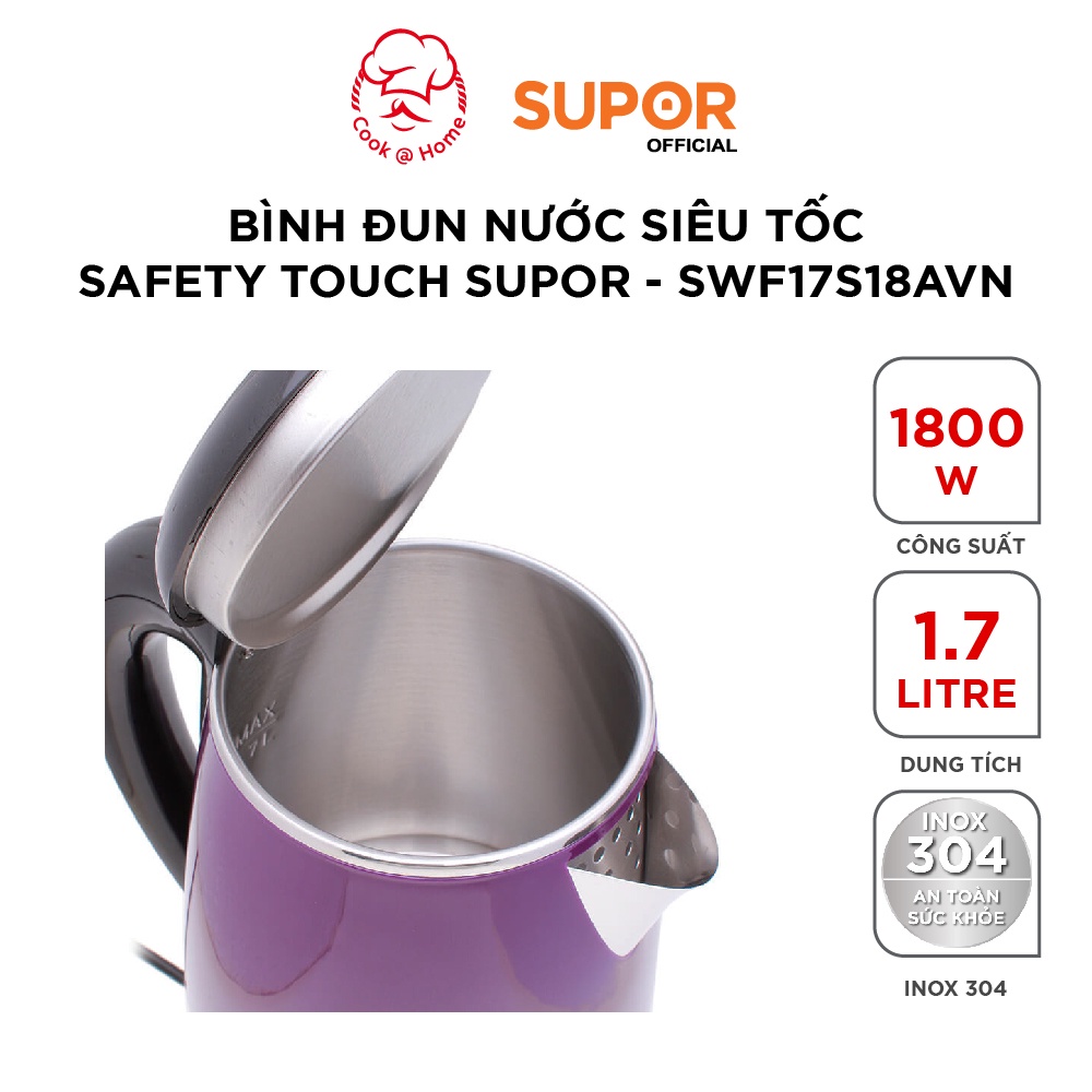 Giới thiệu Bình đun nước siêu tốc Safety Touch Supor SWF17S18AVN - 1.7L, 1800W