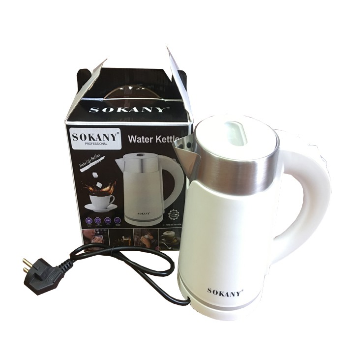 Ấm đun nước siêu tốc SOKANY SK-0808 bằng công nghệ mới nhất, được trang bị bộ điều khiển cảm biến nhiệt ấm tự ngắt điện khi đủ nhiệt.