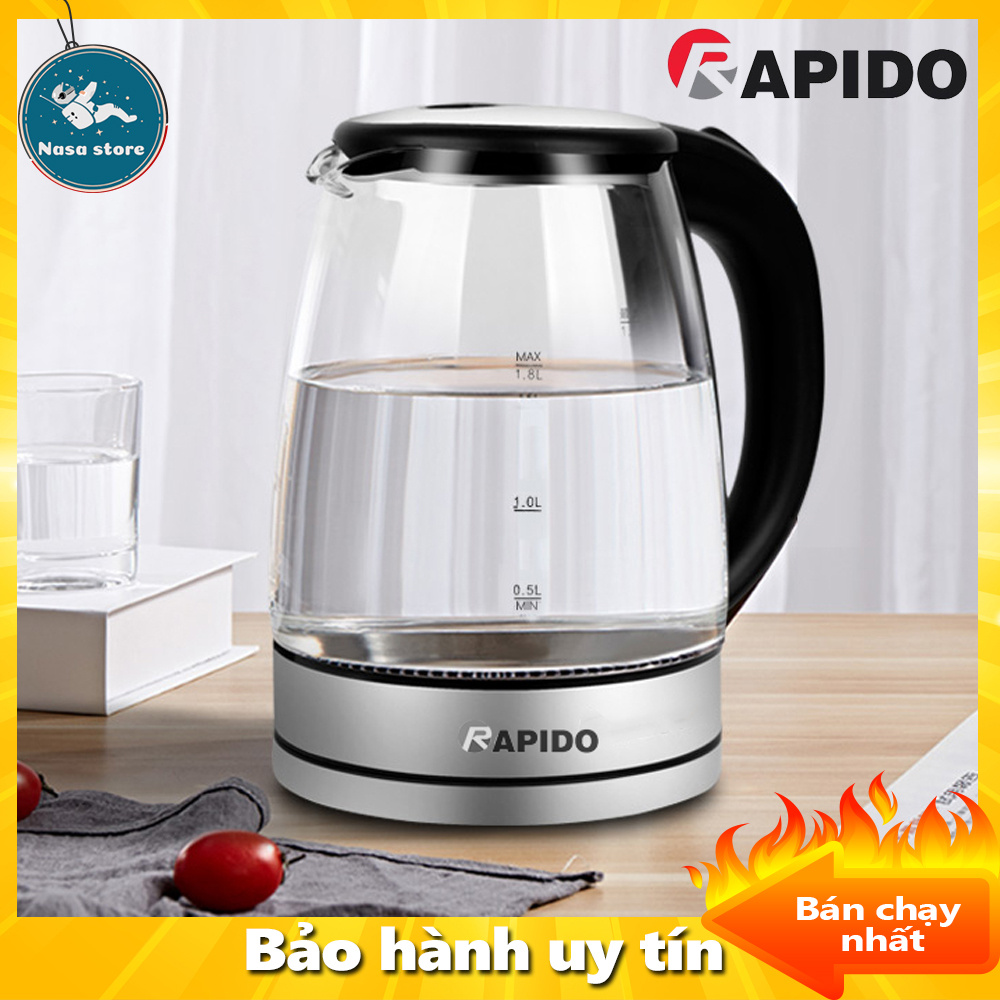 Bình Đun Nước, Bình siêu tốc thuỷ tinh, Ấm siêu tốc thủy tinh Rapido An toàn, Tiết kiệm điện. BẢO HÀNH CHÍNH HÃNG UY TÍN