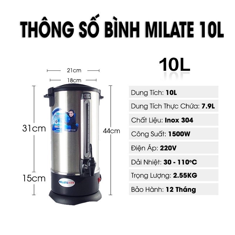 💿 BÌNH ĐUN NƯỚC NÓNG MILATE 8L/10L/12/16L/20L💿--------------------------