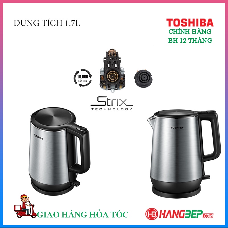 ✔ Bình đun siêu tốc Toshiba màu inox sáng bóng, kiểu dáng sang trọng, dung tích lớn 1.7 lít sử dụng thuận tiện tại gia đình, văn phòng nhỏ...