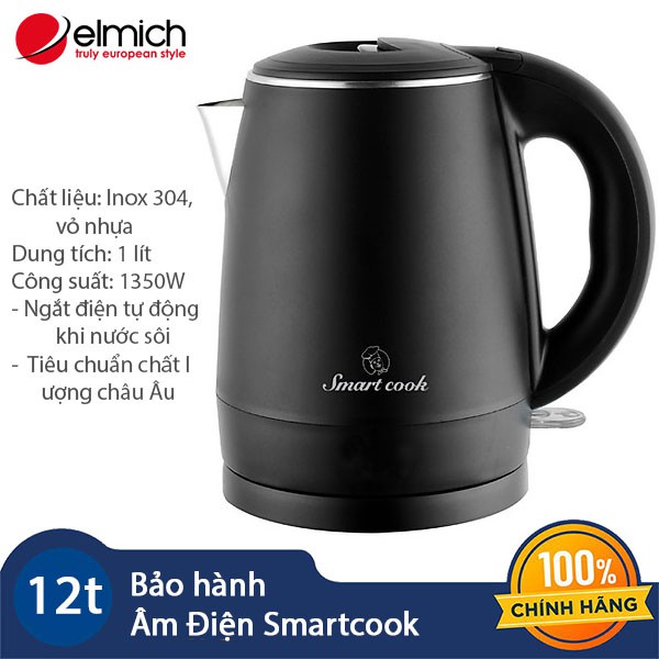 Bình đun nước siêu tốc 1 lít Elmich Smartcook KES-3865 hàng chính hãng, bảo hành 12 tháng