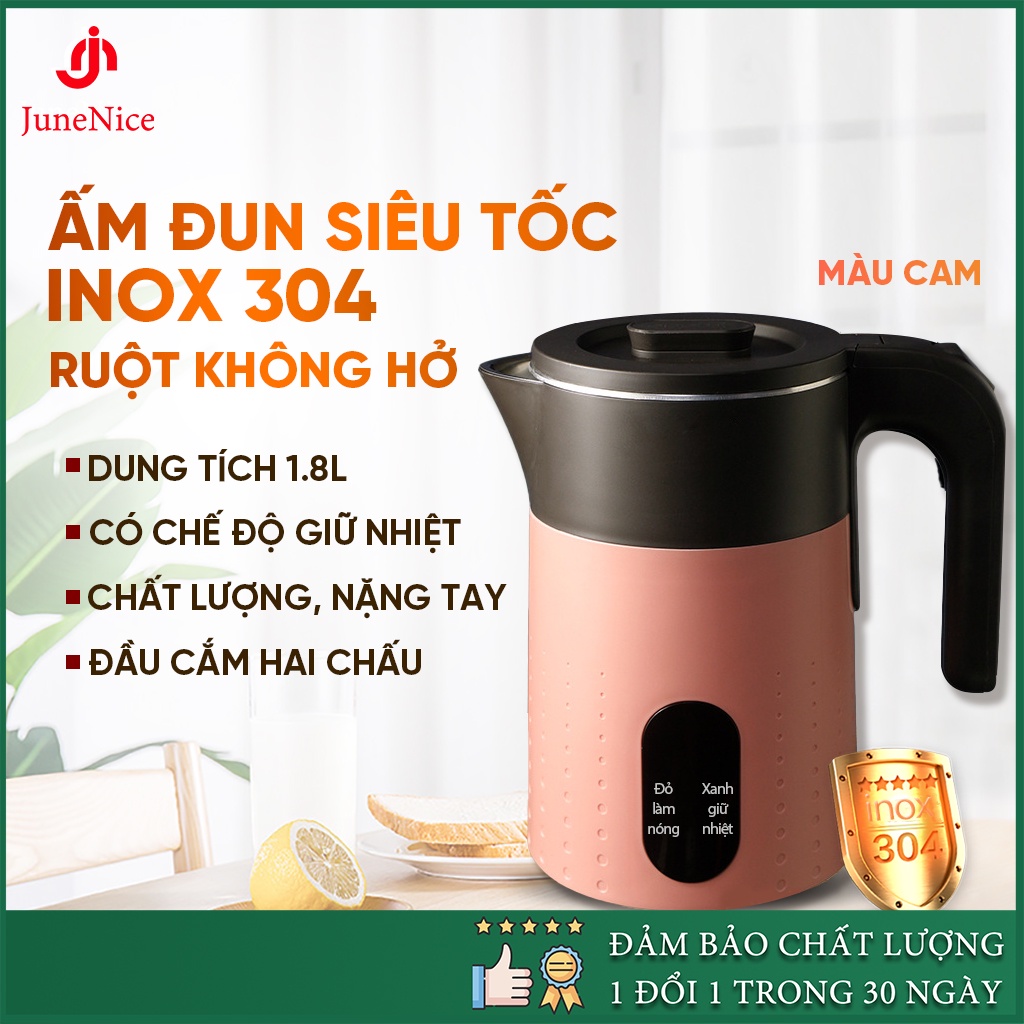 Bình đun nước siêu tốc, ấm siêu tốc 1.8 lít giữ nhiệt và đun, ruột bằng thép không gỉ Inox304 của JN June Nice