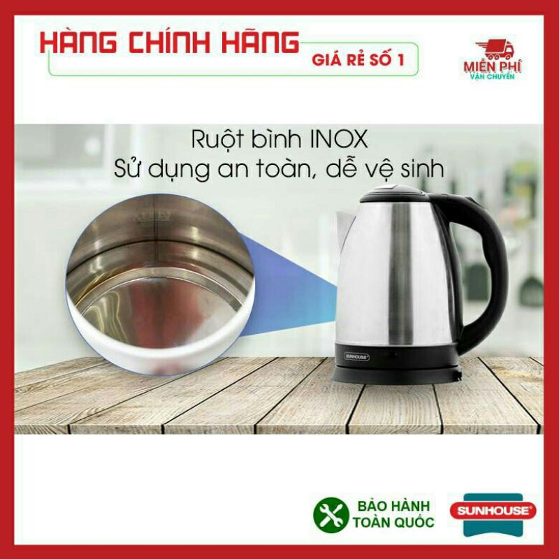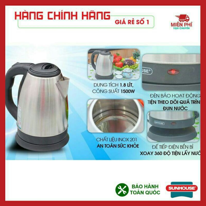 Thiết Bị Điện Gia Dụng > Đồ gia dụng nhà bếp > Ấm đun siêu tốc || Bình Đun Nước Siêu Tốc INOX 1.8 Lít. Siêu Tốc SUNHOUSECòn hàng