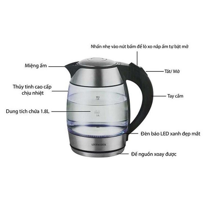 Ấm siêu tốc thủy tinh Lock&Lock EJK418SLV 1.8LThông tin sản phẩm: