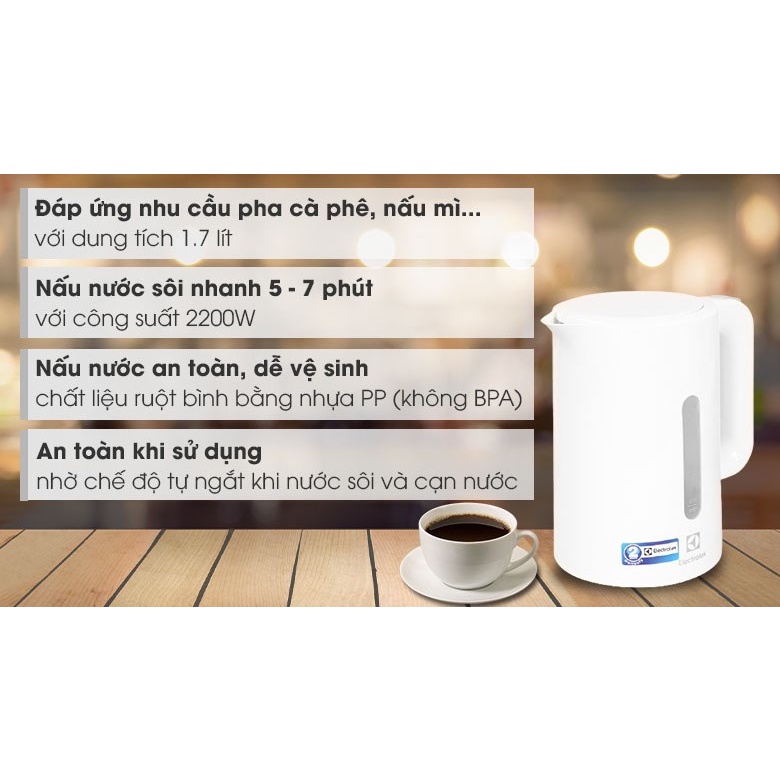 Thiết Bị Điện Gia Dụng > Đồ gia dụng nhà bếp > Ấm đun siêu tốc || [Mã 44ELSALE2 giảm 7% đơn 300K] Bình đun nước siêu tốc Electrolux E2EK1-100W 1.7L - Hàng chính hãngCòn hàng