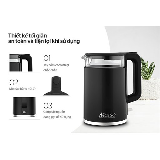 ✔ Thân ấm 2 lớp chống bỏng: Thủy tinh chịu lực chịu nhiệt – Nhựa cao cấp chống bỏng✔ Bộ điều khiển nhiệt Strix (Anh Quốc) – Tiêu chuẩn Châu Âu, độ bền tới 10.000 lần sử dụng