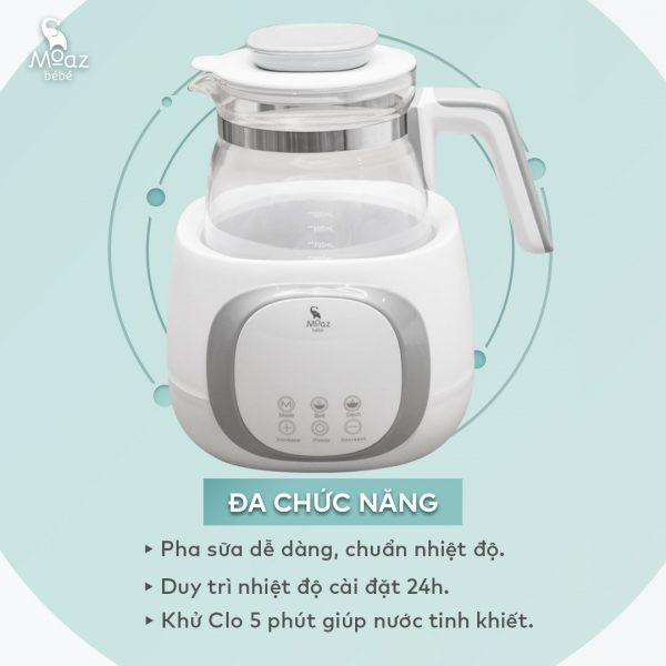 - Tên sản phẩm: Bình Đun Nước Thông Minh MOAZ BÉBÉ Giữ Nhiệt 24h Và Khử Clo Trong 5 Phút MB 012