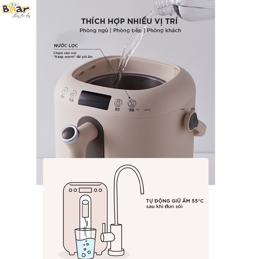 Thiết Bị Điện Gia Dụng > Đồ gia dụng nhà bếp > Ấm đun siêu tốc || Bình đun nước thủy điện thông minh Bear 3L có tính năng khử clo và khoá trẻ em an toànCòn hàng