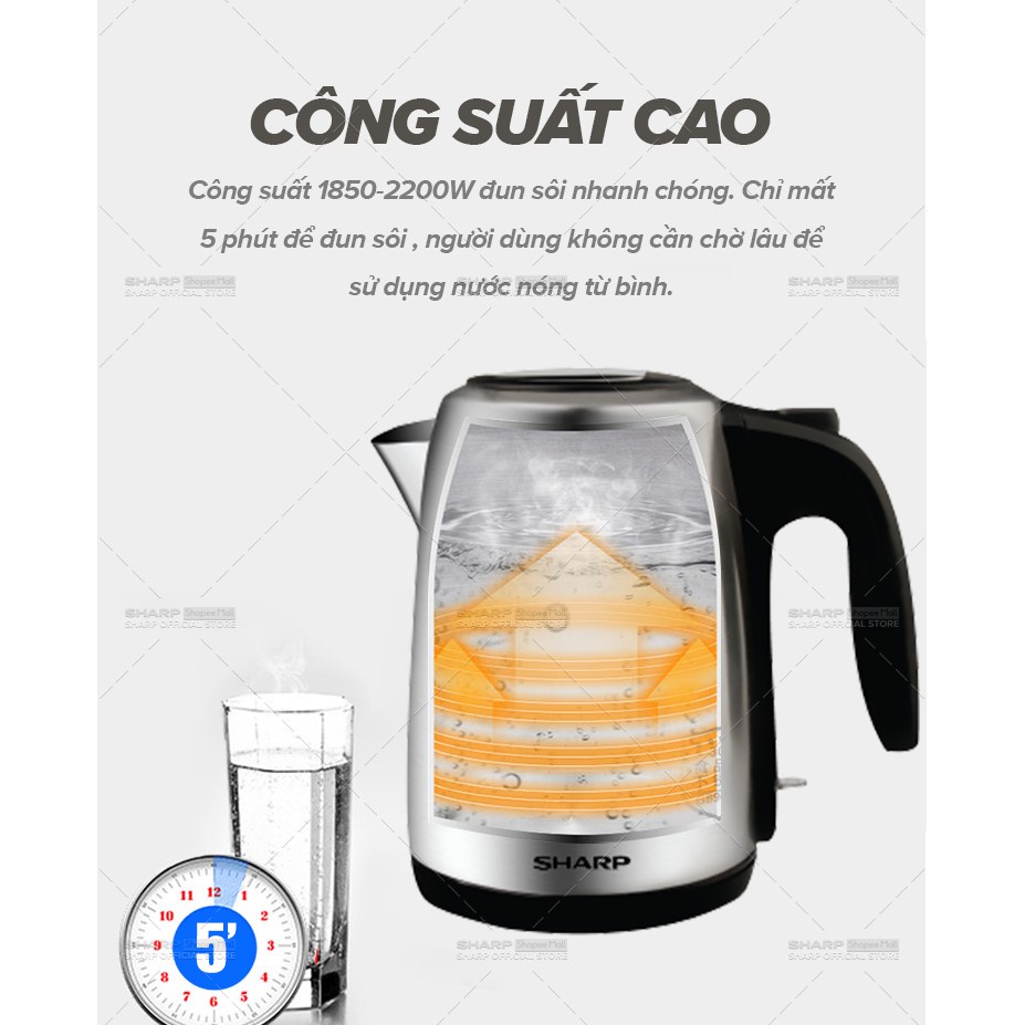 Bình Đun Siêu Tốc 1.5 Lít Sharp EKJ-15EVS-ST [Vạch báo mực nước: hai bên, Cảm biến nhiệt: FADA] - Bảo Hành Chính Hãng 12 ThángXuất xứ: Trung Quốc