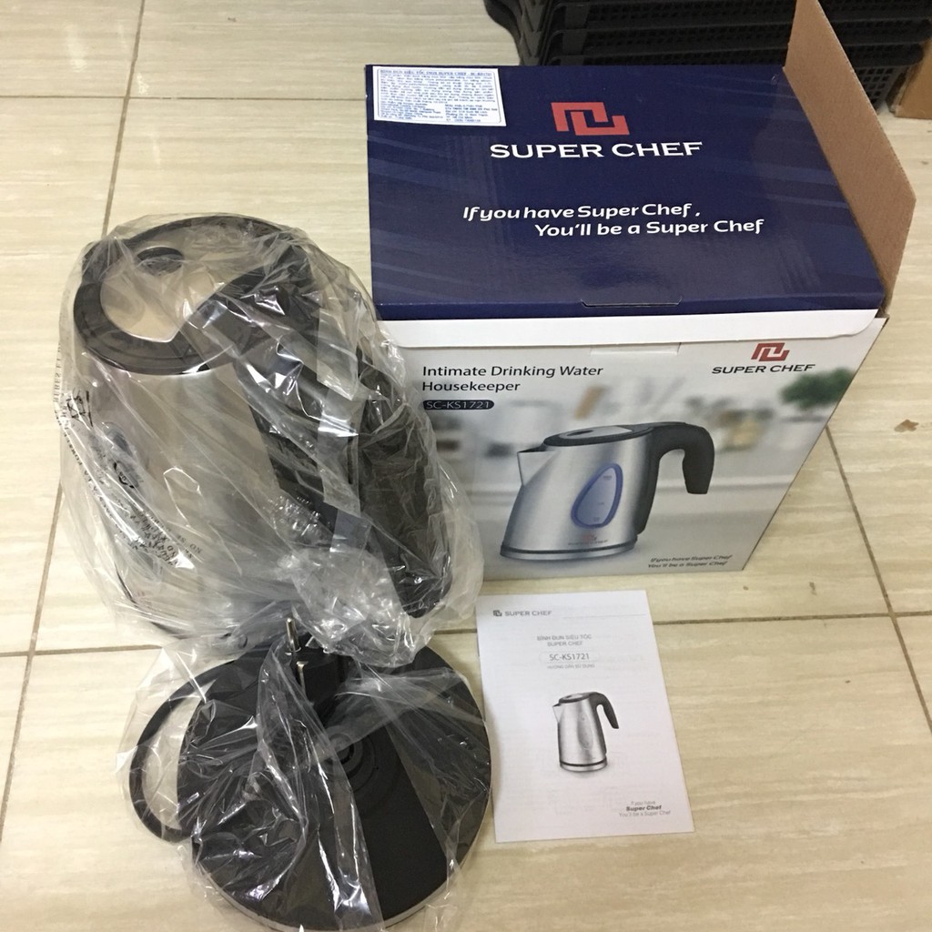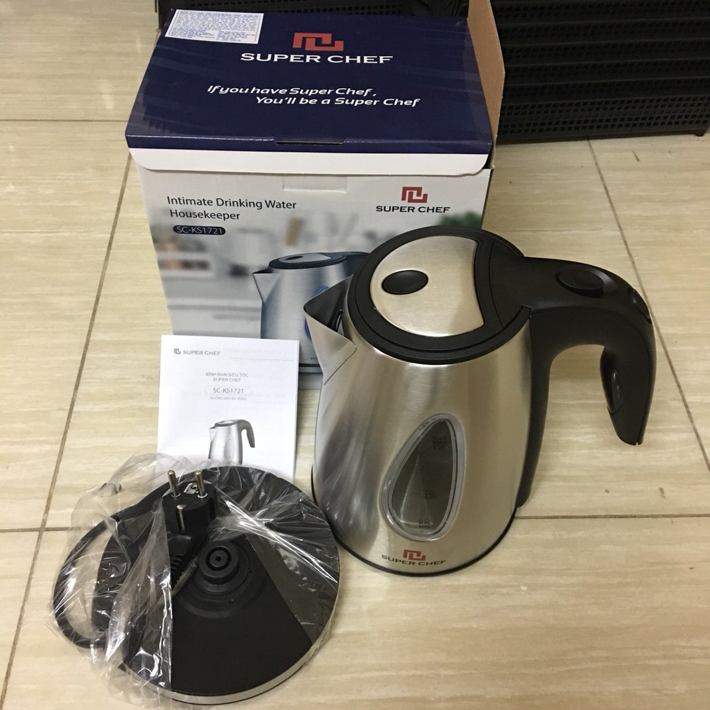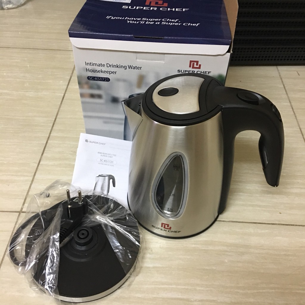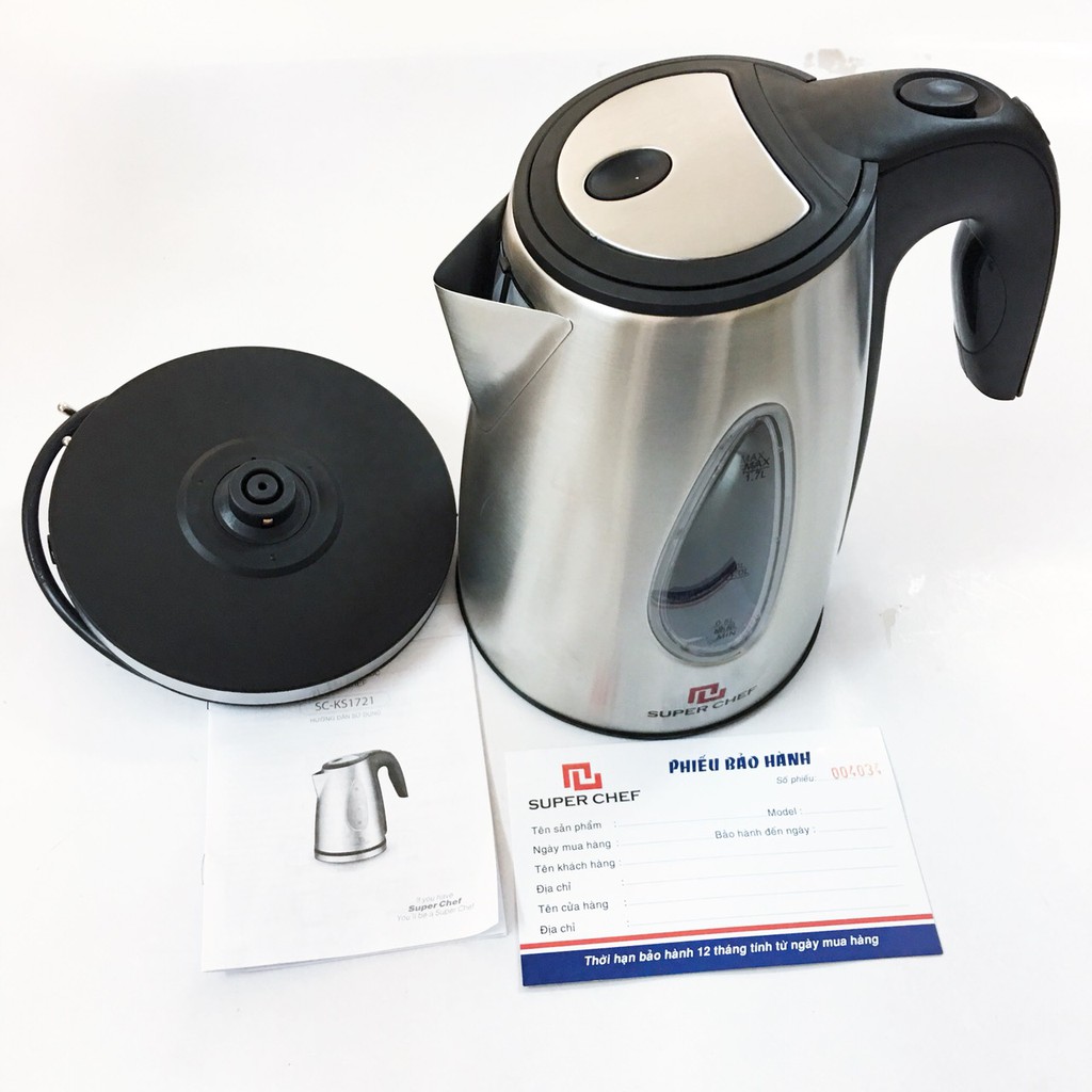 Bình đun siêu tốc 1.7L inox cao cấp SuperChef SC_KS1721 bảo hành chính hãng