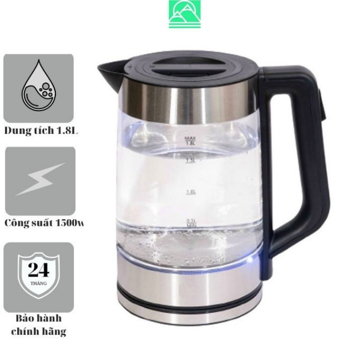 3. Ấm siêu tốc thủy tinh cao cấp bảo hành 24 tháng toàn quốc