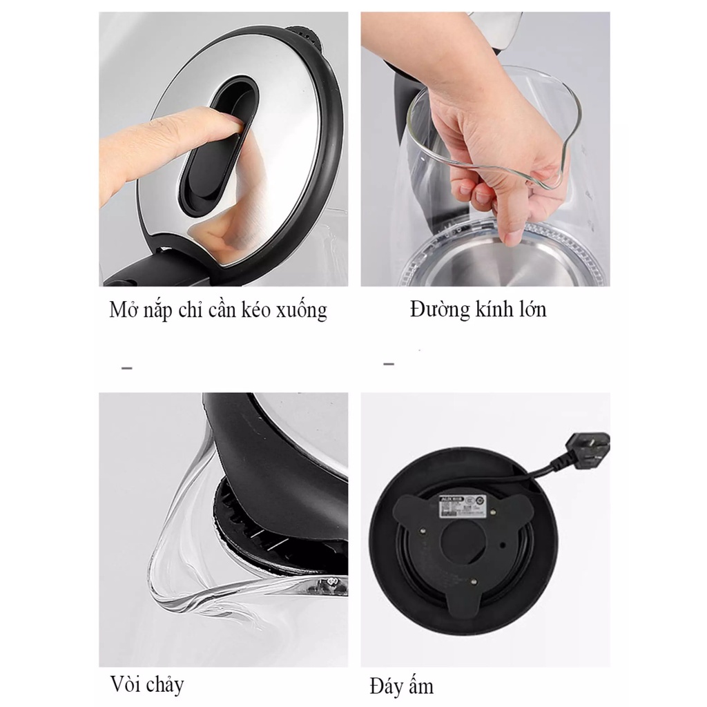 👉Bảo vệ chống đun sôi khô. (Ấm đun tự động tắt khi không có nước bên trong hoặc khi nước bị bốc hơi hết trong quá trình nấu.)