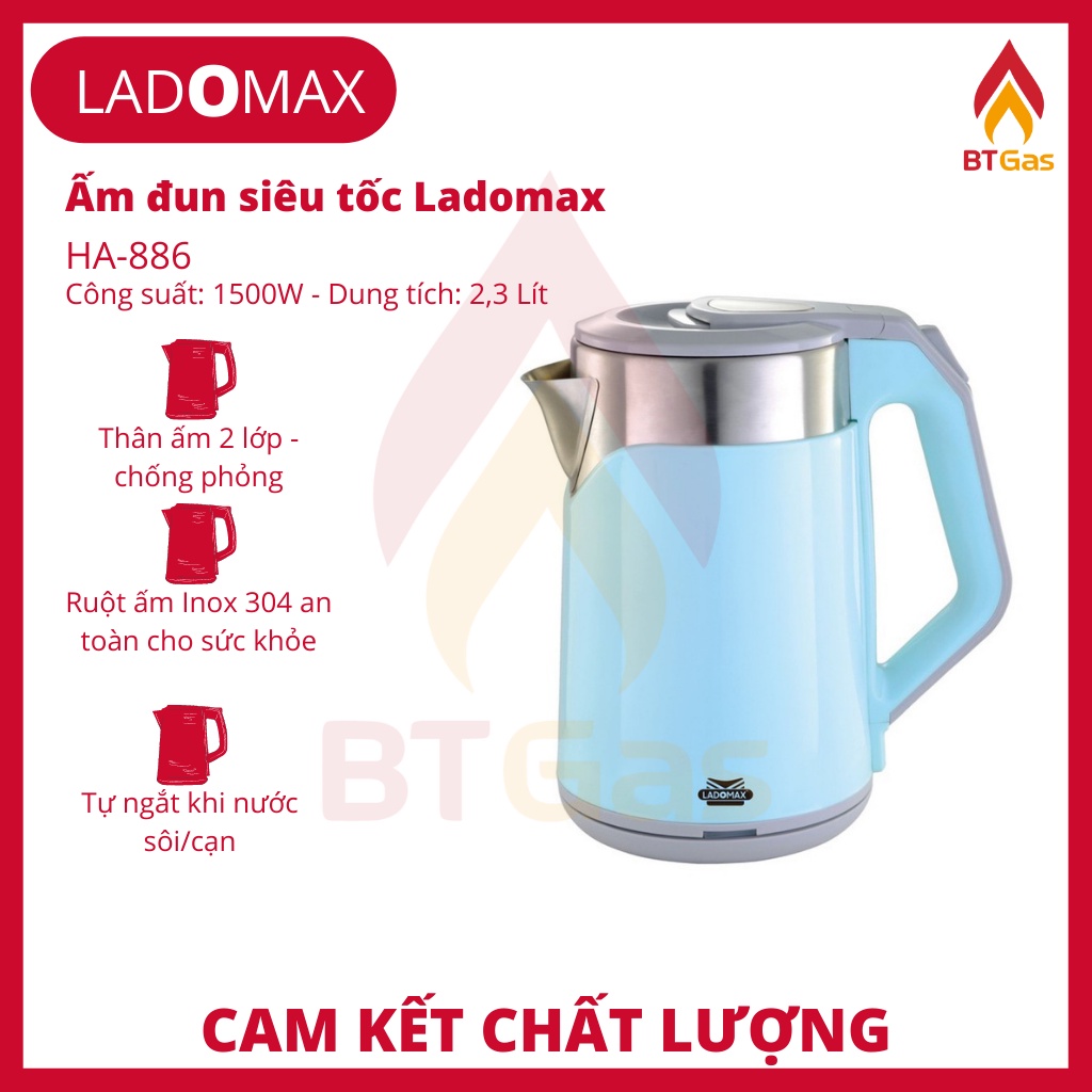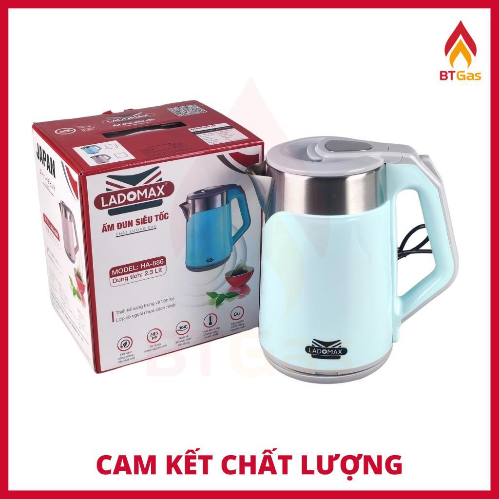 Bình đun siêu tốc, ấm siêu tốc Inox 2 lớp chống phỏng đun nước siêu nhanh Ladomax HA-886 2.3L