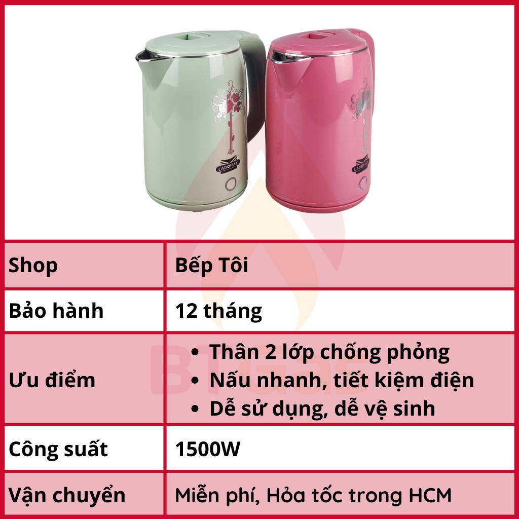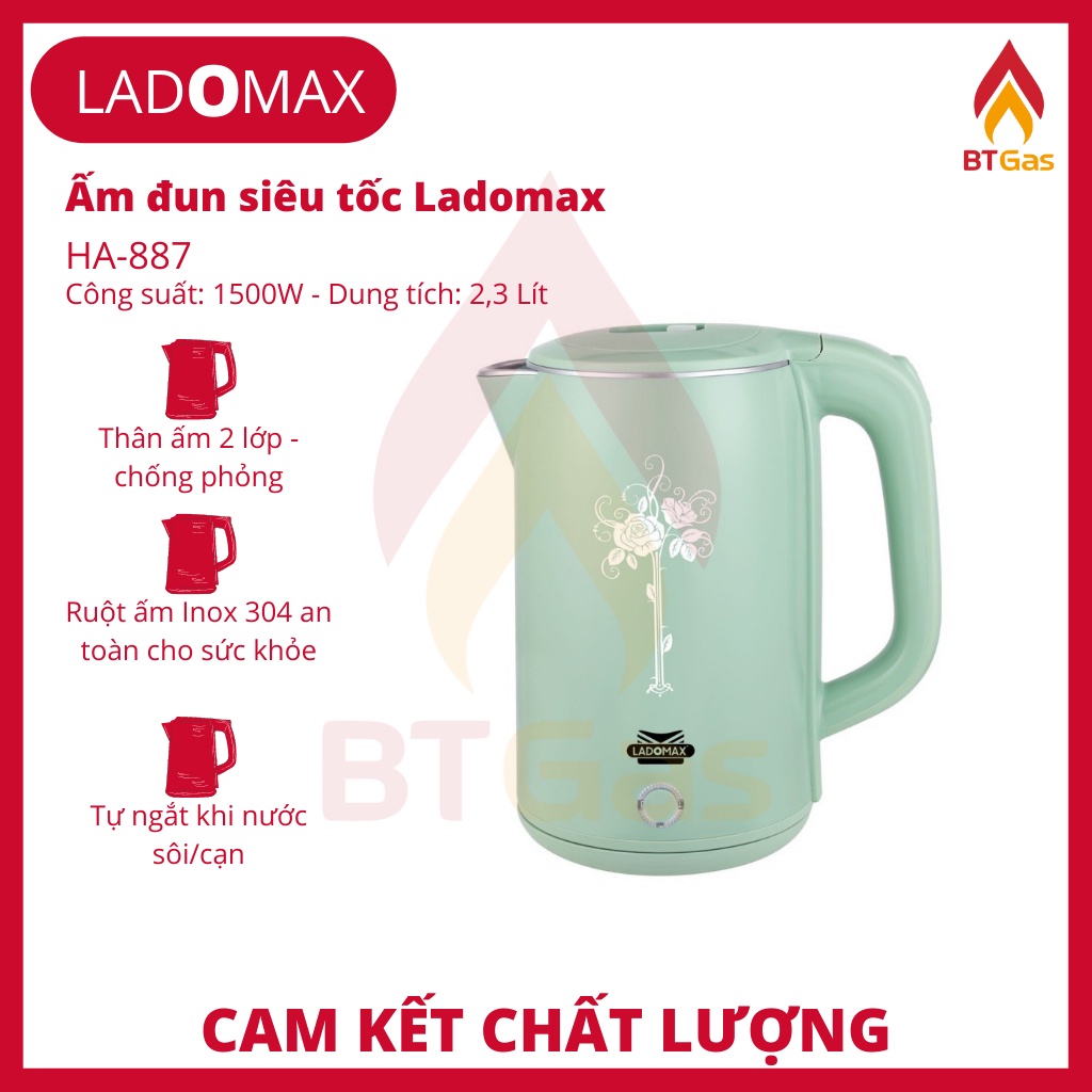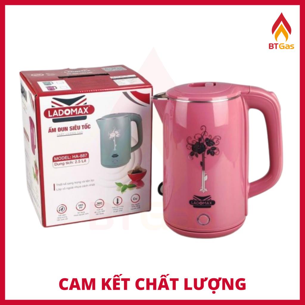 Bình đun siêu tốc, ấm siêu tốc đun nước siêu nhanh Inox 2 lớp chống phỏng Ladomax HA-887 2.5L
