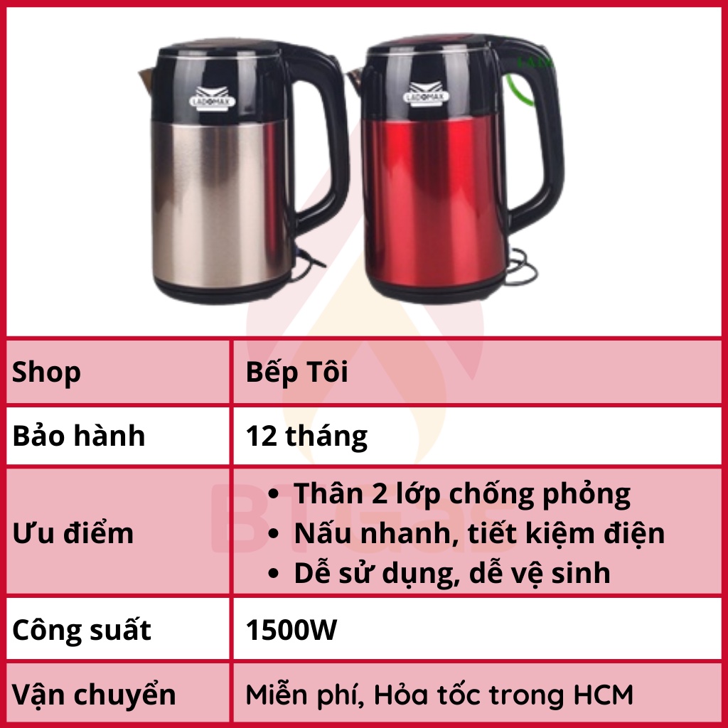 Thiết Bị Điện Gia Dụng > Đồ gia dụng nhà bếp > Ấm đun siêu tốc || Bình đun siêu tốc, ấm siêu tốc đun nước siêu nhanh Inox 2 lớp chống phỏng Ladomax HA-888 2.5LCòn hàng