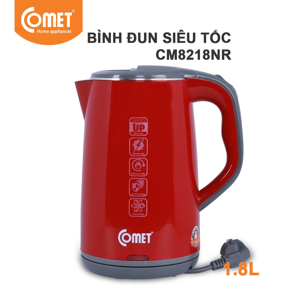 Giới thiệu [Mã ELHADEV giảm 4% đơn 300K] Bình Đun Siêu Tốc COMET inox 304 1.8L CM8218N - Hàng chính hãng