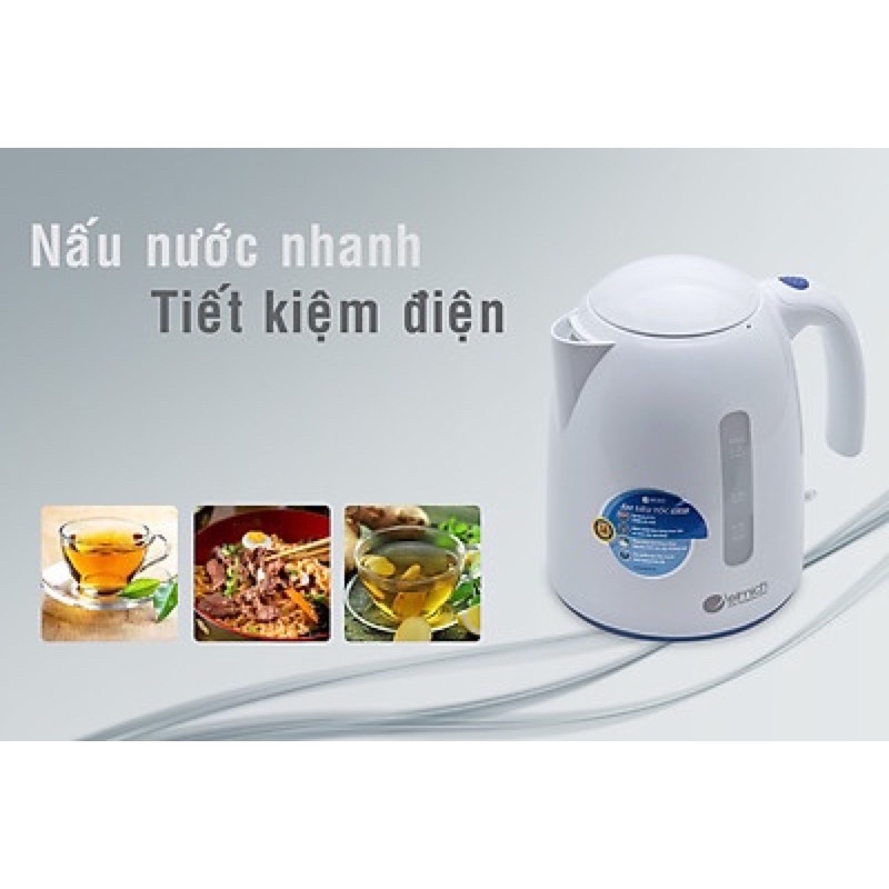 Công suất 1850W Thể tích 1.2 L Chất liệu ruột bình nhựa nguyên sinh Mâm nhiệt phẳng Inox 304 Bộ điều khiển Strix Tự động ngắt khi nước sôi Đế xoay 360 độKiểu dáng độc đáo, hiện đại