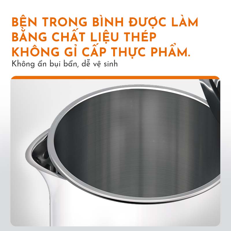 Bình đun siêu tốc GAABOR GK-S23P dung tích lớn 2.3L - 1500W - Thép không gỉ - Hàng chính hãng