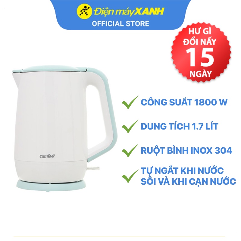 Bình đun siêu tốc Comfee CK-DC1720A mẫu mã đẹp, giá tốt, đun nước sôi nhanh, tiện dụng cho mọi gia đình.