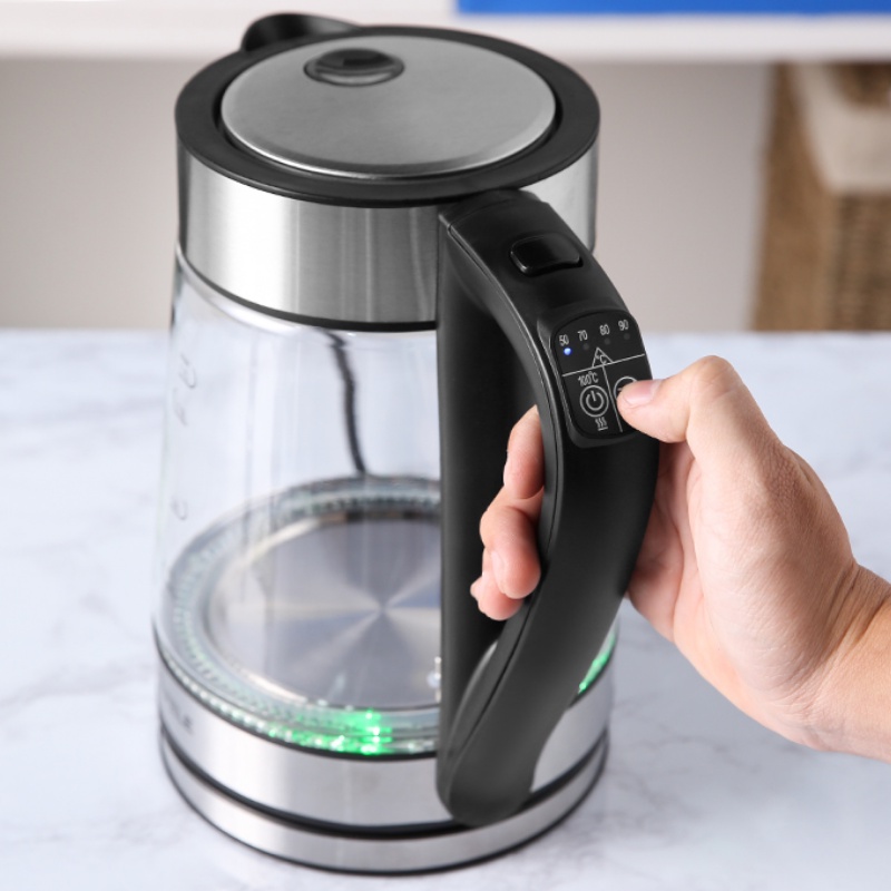 - Bình đun siêu tốc Hafele thiết kế sang trọng, thanh lịch với chất liệu bình bằng thủy tinh trong suốt chịu nhiệt tốt.