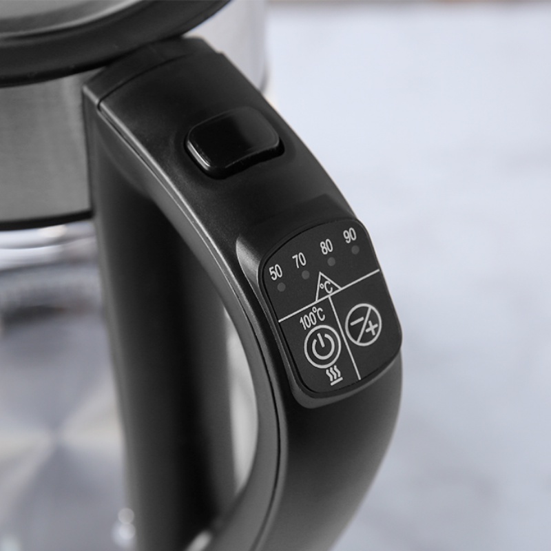 - Hệ đèn LED thông minh: 5 màu sắc khác nhau tương ứng 5 mức nhiệt độ từ 50 - 100 độ C, cho người dùng biết nhiệt độ nước hiện tại trong ấm.