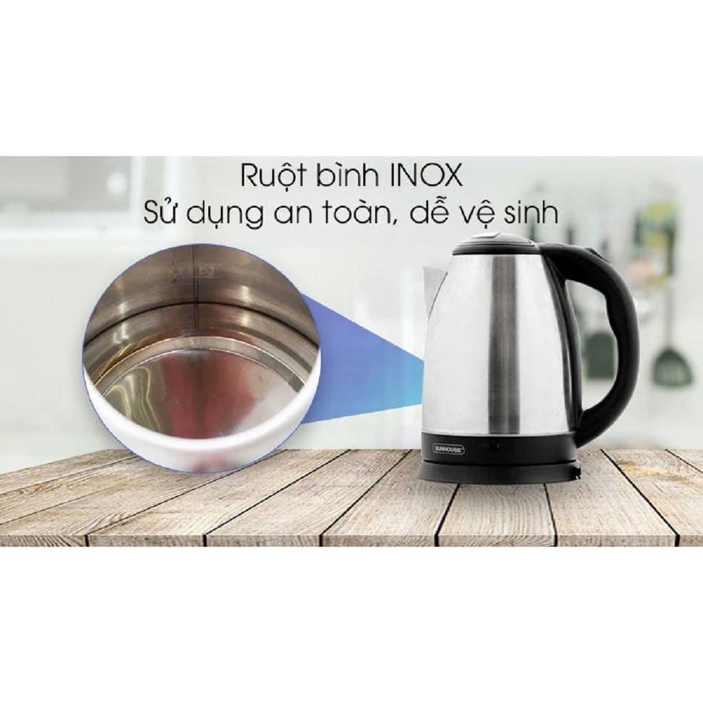 Thiết Bị Điện Gia Dụng > Đồ gia dụng nhà bếp > Ấm đun siêu tốc || Bình đun siêu tốc Happy Time Sunhouse 1.8 lít - ấm đun nước Inox 1500W HTD1088 phích điện nấu nướcCòn hàng