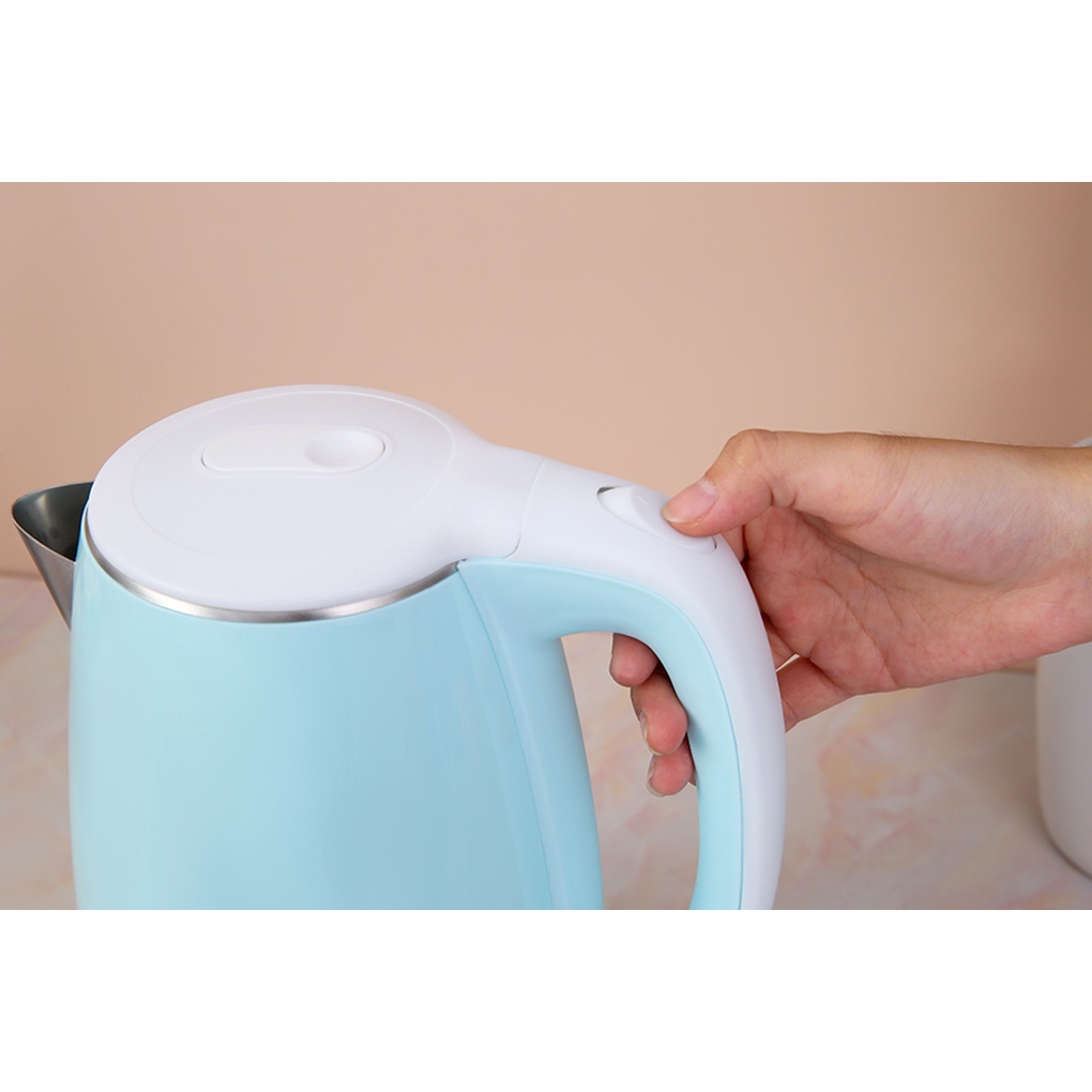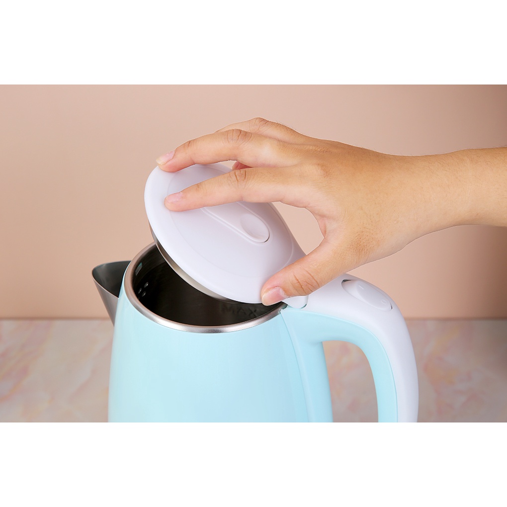● Bình đun siêu tốc có vỏ ngoài màu xanh Pastel nhã nhặn, tươi tắn.Góp phần tô điểm cho không gian bếp gia đình, công ty sang trọng, tươi sáng. Đáp ứng nhu cầu nước nóng cho gia đình có từ 3 - 4 thành viên với dung tích 1.7 lít.