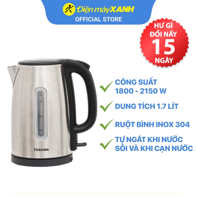 [Mã ELHADEV giảm 4% đơn 300K] Bình đun siêu tốc Toshiba 1.7 lít KT-17SH1NV