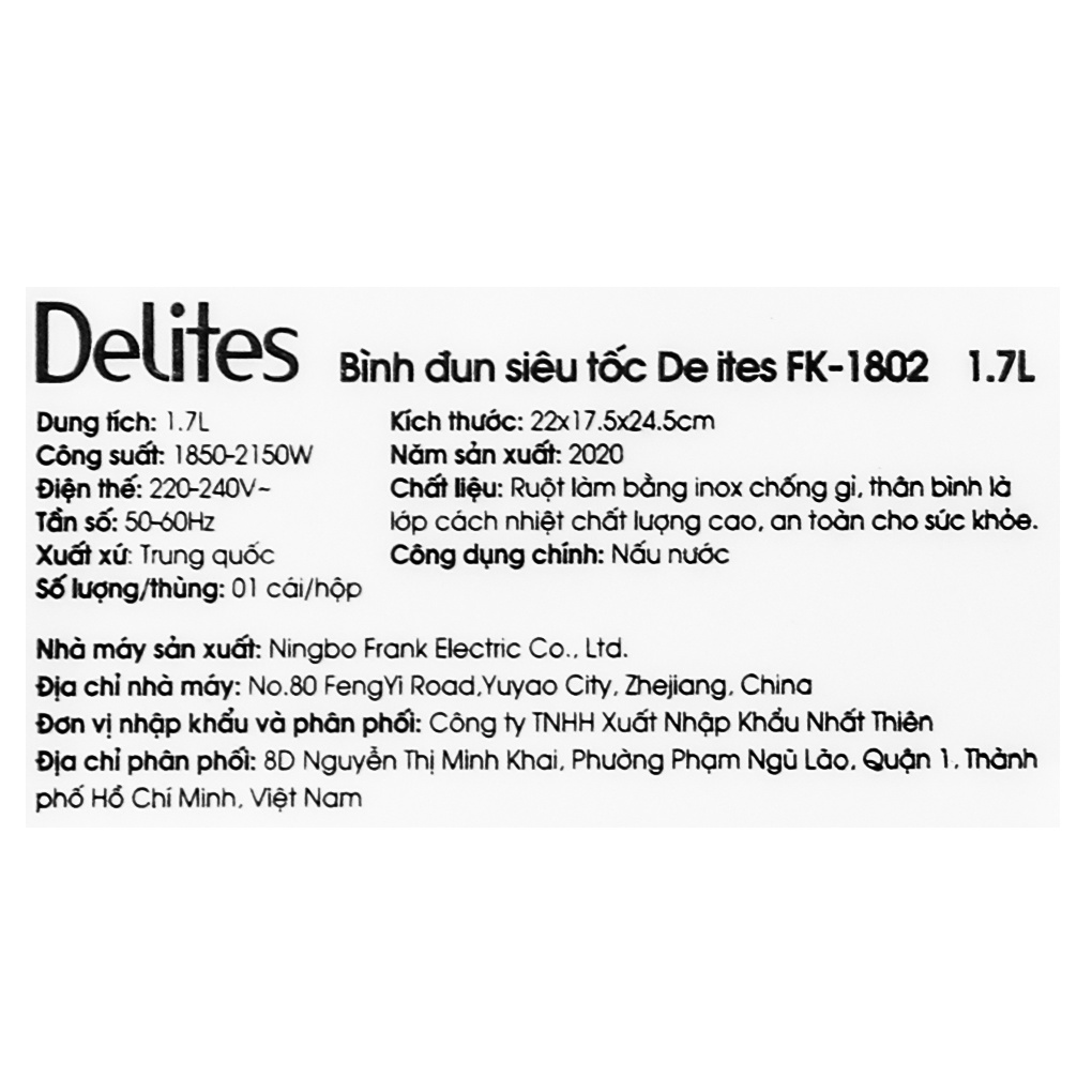 Thiết Bị Điện Gia Dụng > Đồ gia dụng nhà bếp > Ấm đun siêu tốc || [Mã ELMALL150 giảm 8% đơn 500K] Bình đun siêu tốc Delites 1.7 lít FK-1802Còn hàng