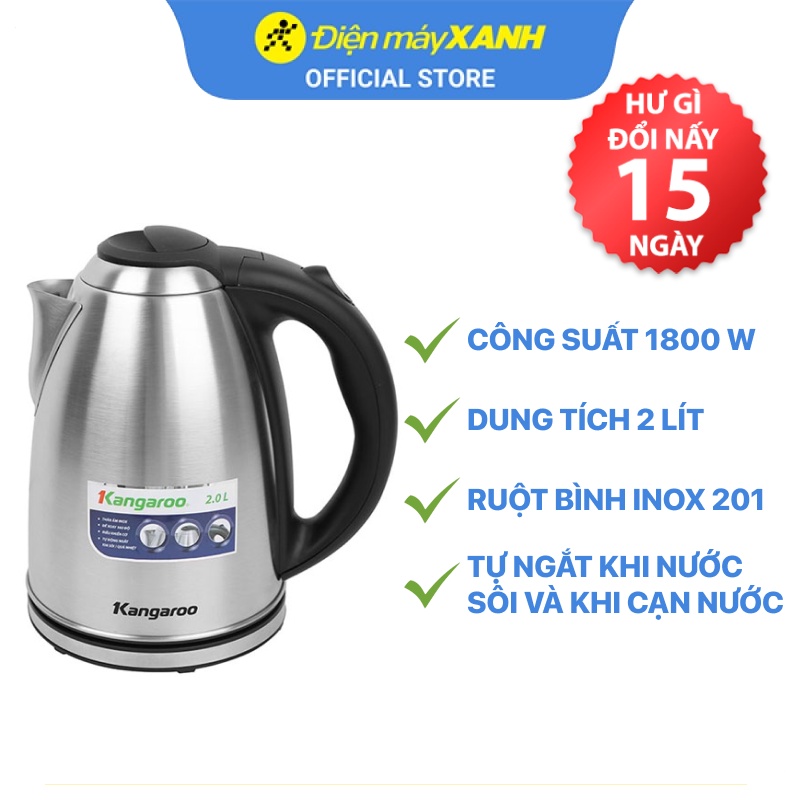 Thiết Bị Điện Gia Dụng > Đồ gia dụng nhà bếp > Ấm đun siêu tốc || [Mã ELHADEV giảm 4% đơn 300K] Bình đun siêu tốc inox Kangaroo G-20SK3 2 lít - Chính hãng BH 12 thángCòn hàng