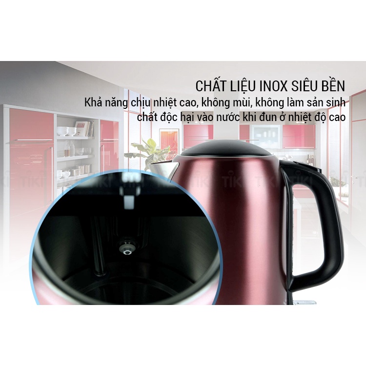 Bình đun có chức năng tự ngắt điện khi nước sôi hoặc cạn nước. Ngoà ra, chức năng này còn giúp tăng tuổi thọ sản phẩm và phòng tránh cháy nổ, đảm bảo tối đa an toàn cho người dùng