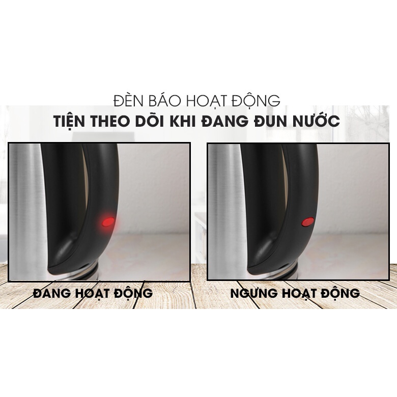 Bình siêu tốc có đèn báo đỏ từ khi bắt đầu cho đến lúc kết thúc quá trình đun sôi nước, giúp bạn dễ dàng nhận biết được nước đã sôi hay chưa mà không cần mở nắp.