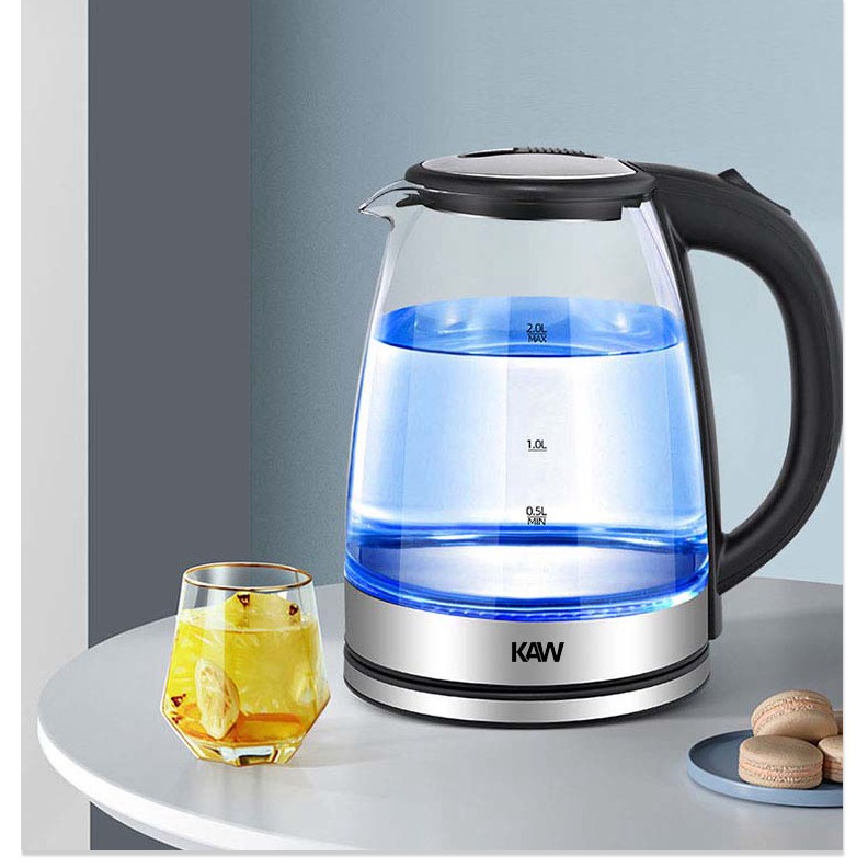 Bình Đun Siêu Tốc KAW RK1818 ✔️Chính Hãng✔️ dung tích 2L, tiết kiệm điện, bình thủy tinh trong suốt, nước nóng siêu nhan