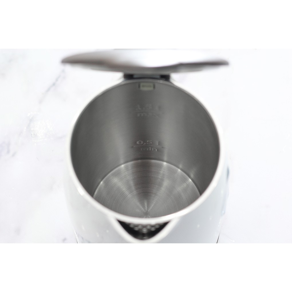 Chế độ tự động ngắt điện khi nước sôi và khi cạn nước mang lại sự an tâm cho người dùng. Bình có đèn báo khi hoạt động và tự tắt khi nước sôi.