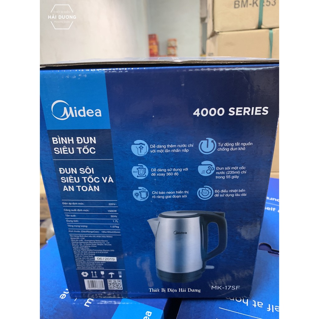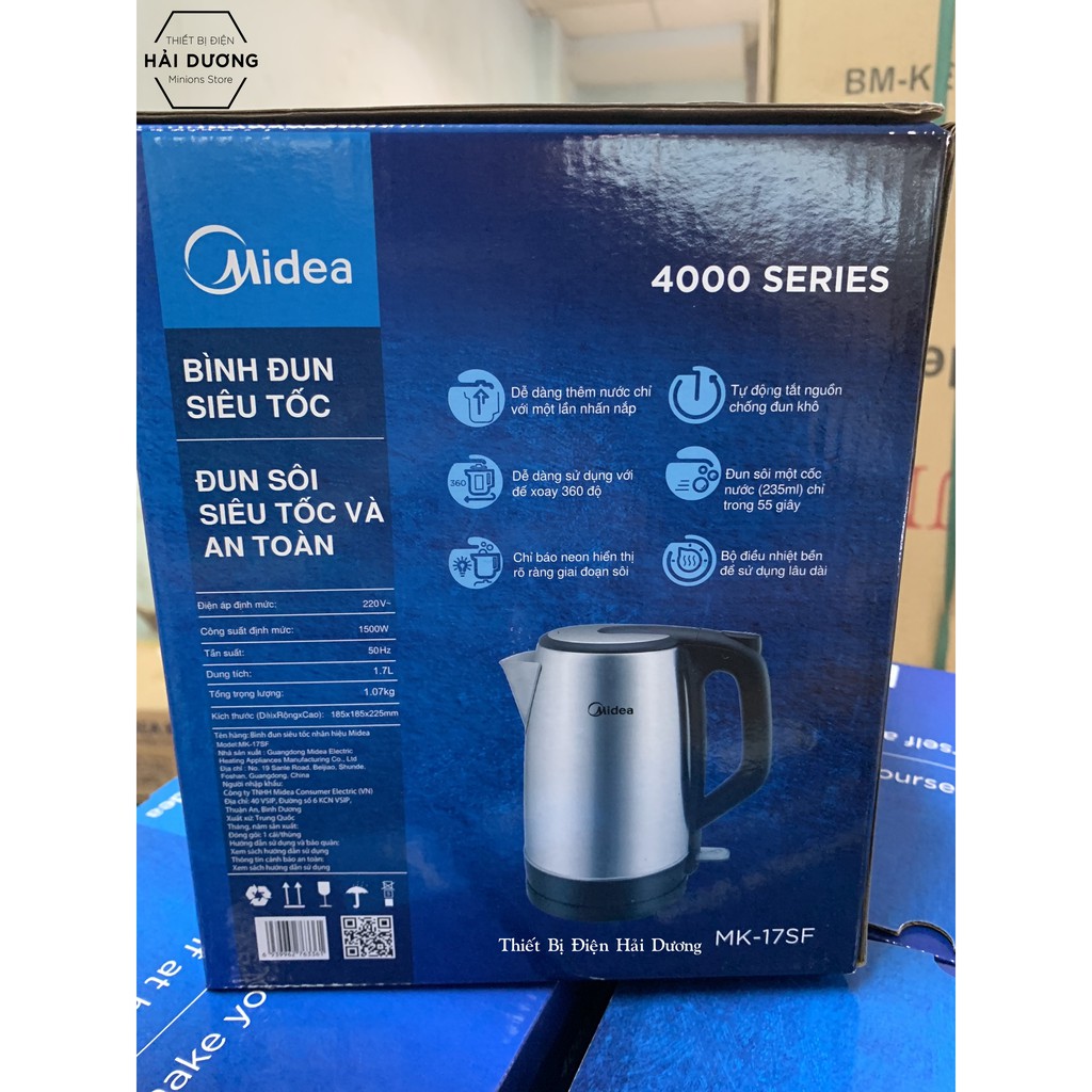 Giới thiệu Bình Đun Siêu Tốc Midea MK-17SF (1.7 Lít) - Công suất 1500w - Tự động ngắt khi nước sôi - Bảo hành 1 năm
