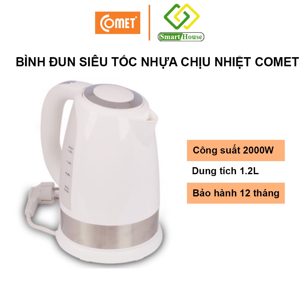 Bình đun siêu tốc nhựa chịu nhiệt Comet CM8222 1.2L