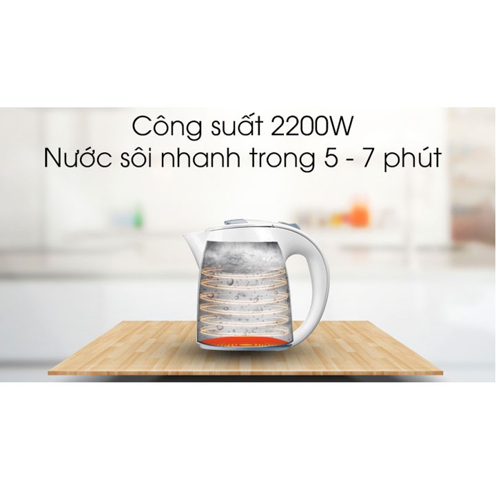 Bình đun nước với đế xoay tròn 360° không dây giúp nhấc lên và đặt xuống dễ dàng.