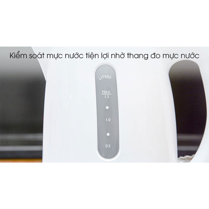 Bình đun nước Philips được trang bị thang thông báo mực nước bên trong bình giúp người dùng dễ sử dụng.