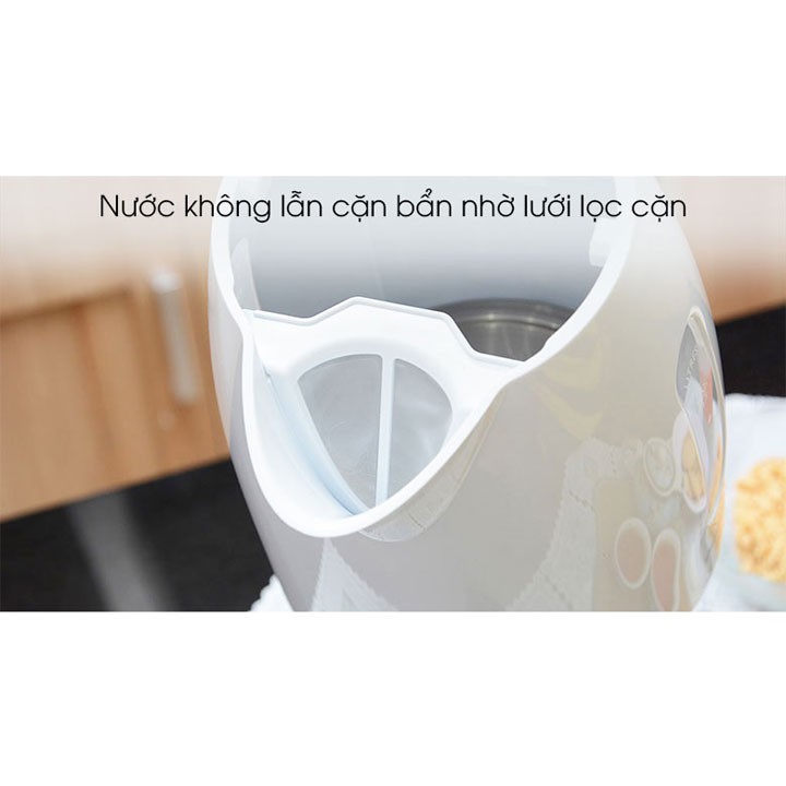 Bình đun nước được trang bị lưới lọc cặn giúp bạn có ly nước sạch hơn, nắp được mở rộng dễ dàng thuận tiện cho bạn châm nước bằng vòi.