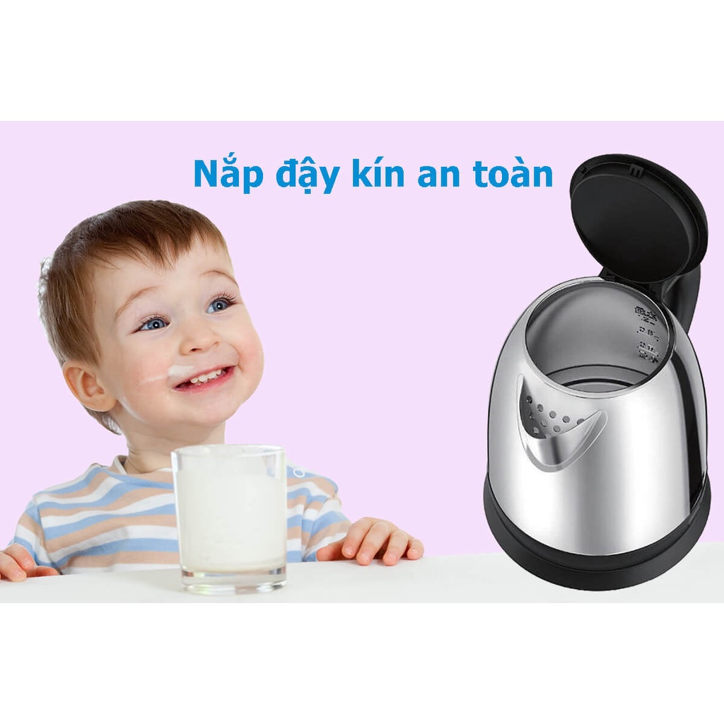 Công suất hoạt động 1800W kết hợp mâm nhiệt dần nhiệt tốt, giúp bạn nấu nước nhanh chỉ trong vài phút.