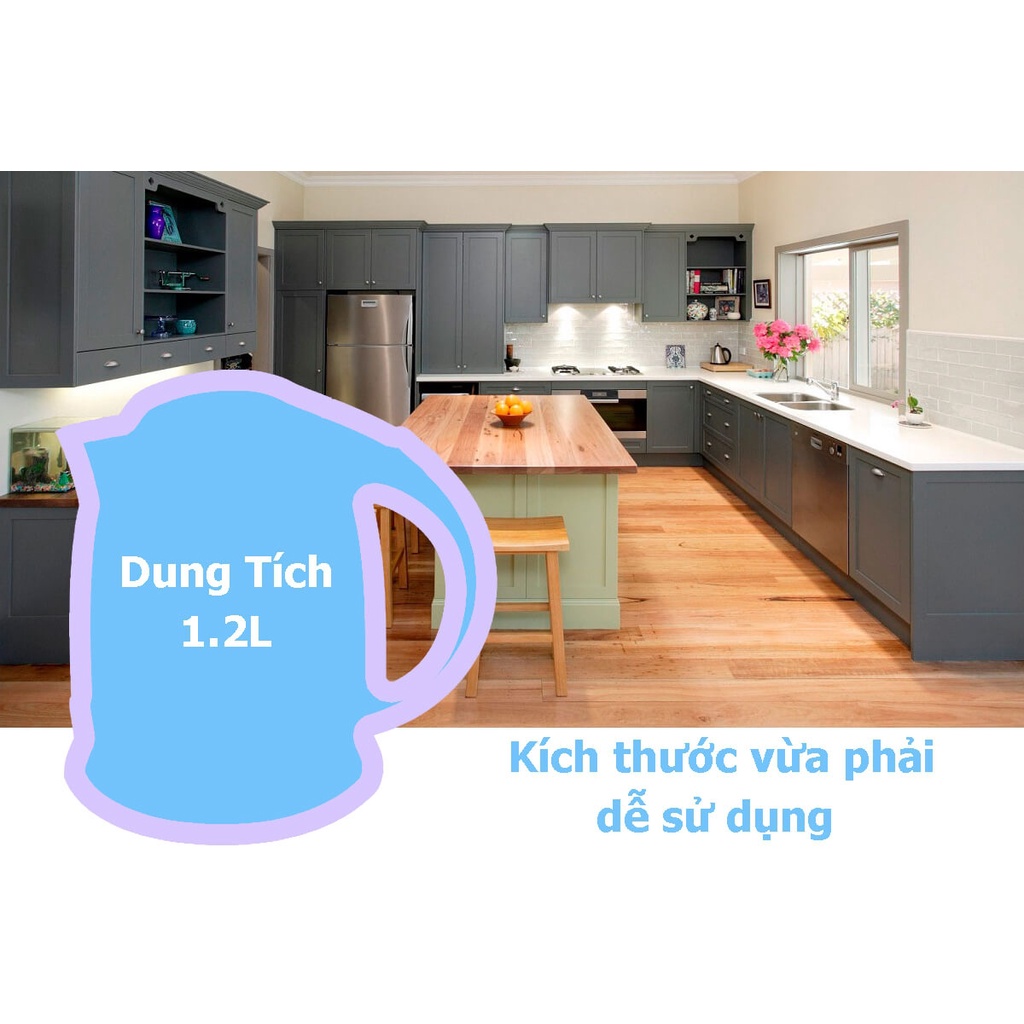 Thiết kế bình đun siêu tốc HD9303 chính hãng Philips có dung tích 1.2 lít, đáp ứng nhu cầu sử dụng pha trà, cà phê, nấu mì cho gia đình từ 2 – 4 người, vô cùng tiện lợi. Sản phẩm thuận tiện cho gia đình có người lớn thường xuyên uống trà sáng.